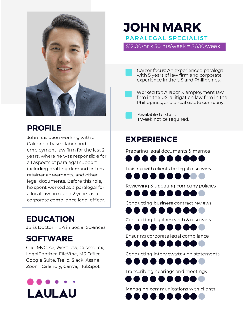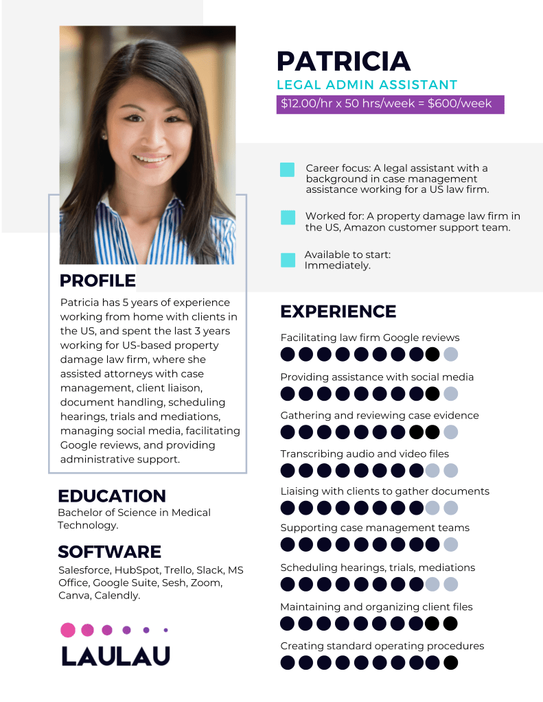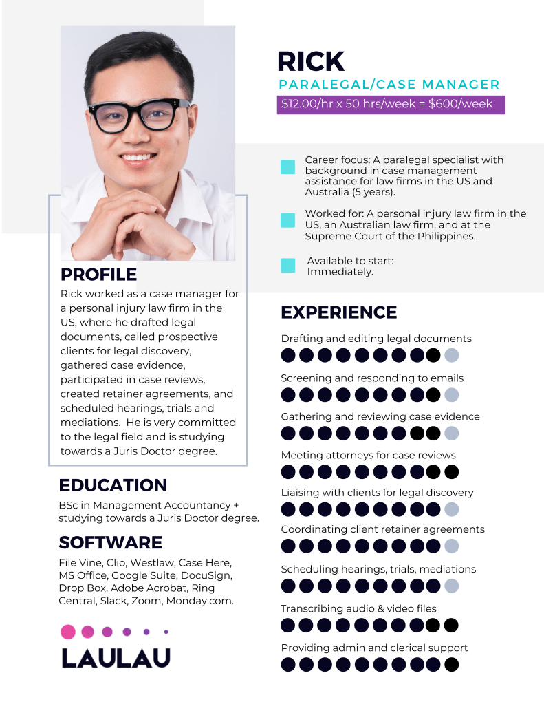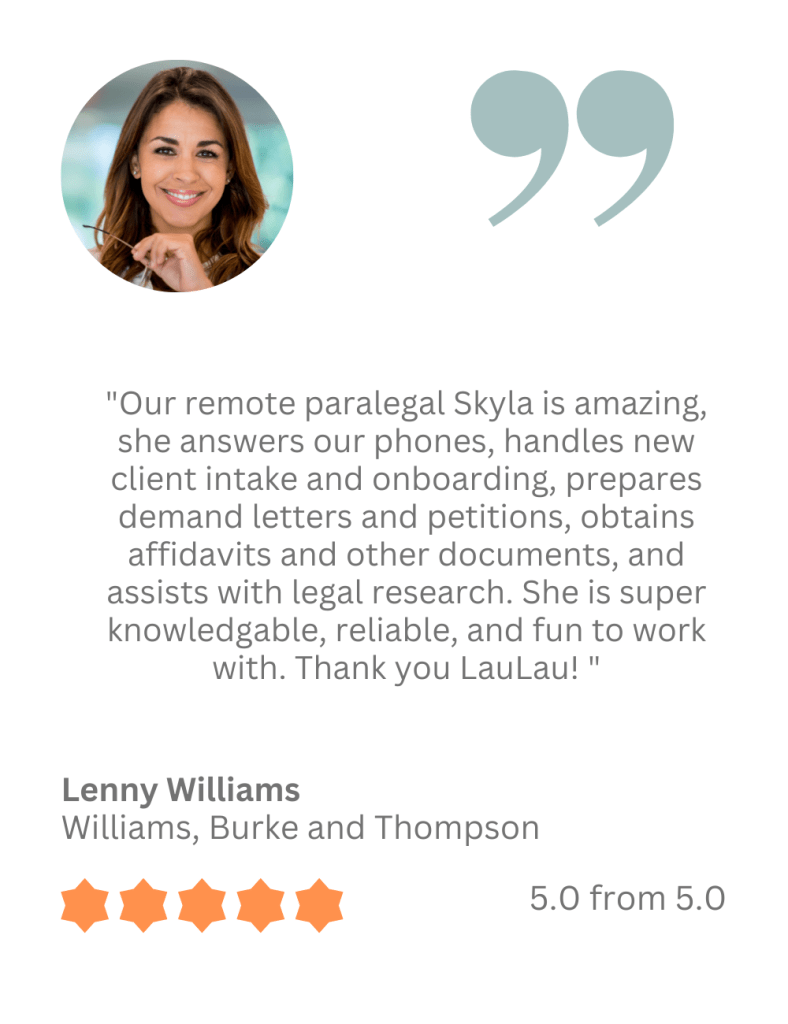 Did you know that over 40% of paralegals in the US work remotely? At LauLau, we are at the forefront of this trend, connecting law firms with skilled offshore remote paralegals. Join the growing number of firms benefiting from our affordable services. Explore how our experienced remote paralegals, client intake specialists, and case managers can support your team.